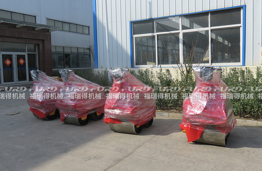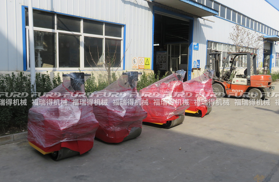 3月12日,福瑞得機(jī)械將廣州客戶一周前訂購的4臺手扶雙輪壓路機(jī)打包發(fā)出。