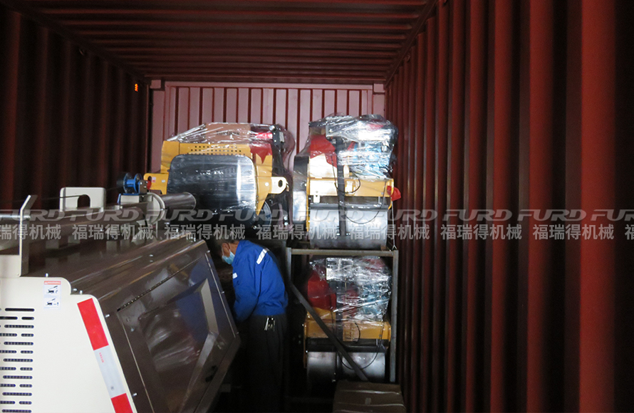 9月3日,福瑞得機(jī)械6臺(tái)手扶雙輪壓路機(jī)、和2臺(tái)9米移動(dòng)燈車(chē)裝車(chē)出口非洲。
