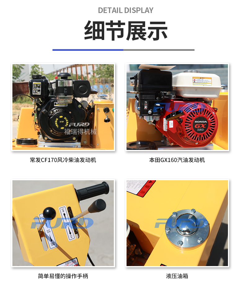 主要用于溝渠基礎(chǔ),道路,體育場(chǎng)地的壓實(shí)整平,也可用于壓實(shí)瀝青表面的作業(yè)。