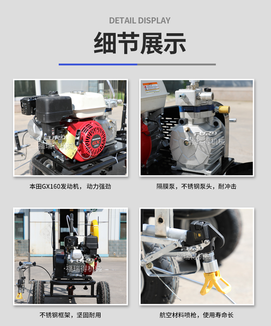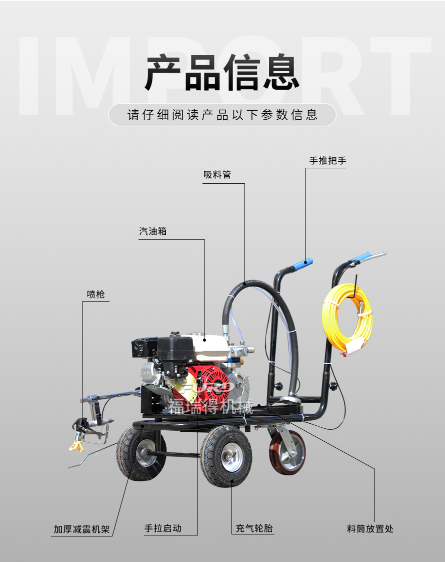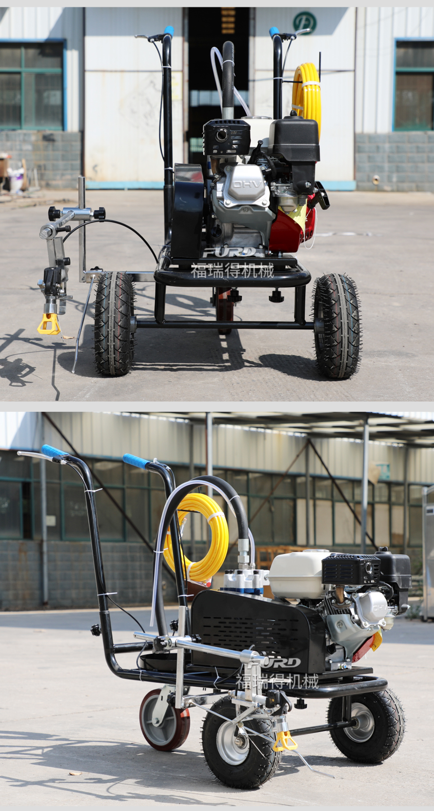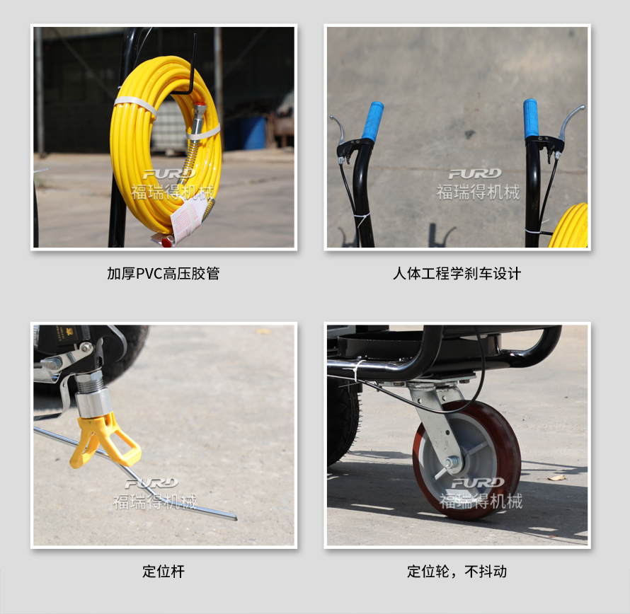 小型手推式道路劃線機(jī)是一種在道路、停車場(chǎng)、廣場(chǎng)和跑道等平整地面上劃出不同約束、指引和警示等規(guī)則限制標(biāo)志的路面施工機(jī)械。最常見(jiàn)的就是在馬路上劃斑馬線,在路上劃車庫(kù)線、停車線等等應(yīng)用于小型工程、短途施工,活動(dòng)方便,靈活操作。