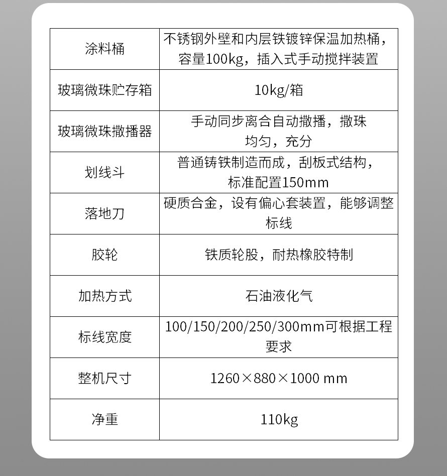 應(yīng)用于道路、高速公路、停車(chē)場(chǎng)、廣場(chǎng)和跑道的在平整地面上劃出不同約速、指引和警示等規(guī)則限制標(biāo)志的路面施工機(jī)械。