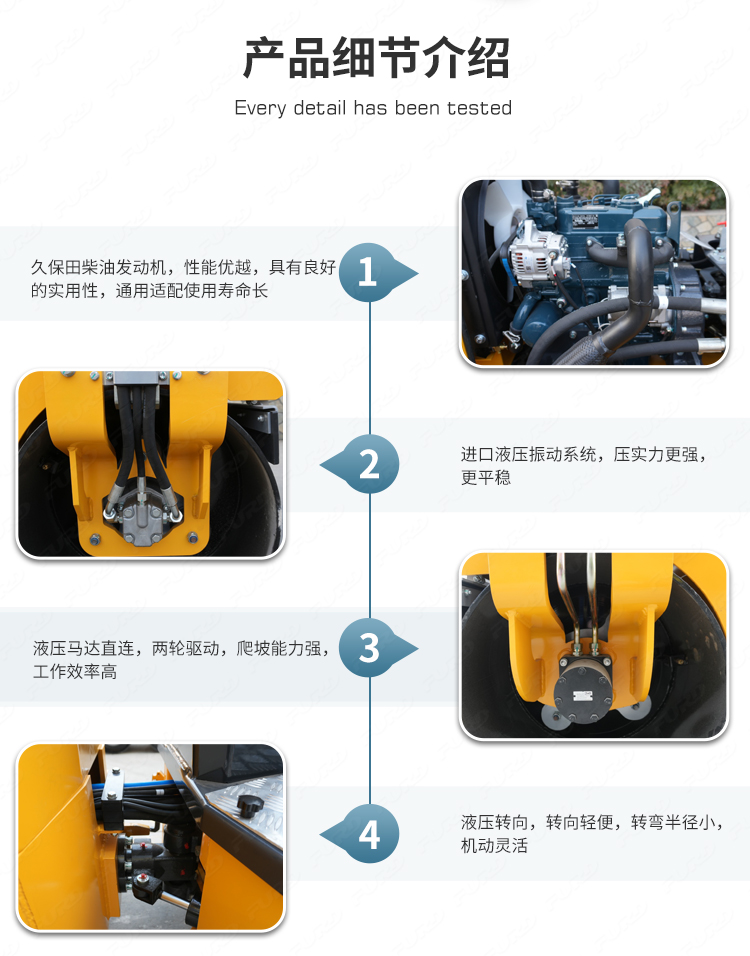 1.5噸重全液壓振動瀝青路面壓路機(jī)配帕金斯柴油機(jī),用于瀝青的壓實(shí)、非粘性和粘性土的壓實(shí)以及穩(wěn)定土的壓實(shí)。