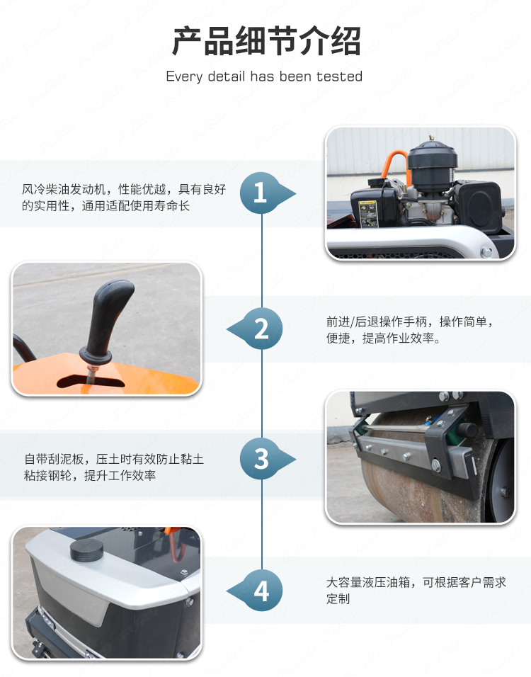 FYLJ-S600P壓路機(jī)是一種小型振動壓路機(jī),適用于修補(bǔ)和養(yǎng)護(hù)各種道路,高速公路路肩,路邊步行,停車區(qū),運(yùn)動場和花園草坪,特別適用于狹窄區(qū)域的壓實(shí),如管道通道和排水溝等